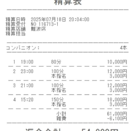 60分¥10000の料金のお店であれば、 女性のお給料は¥5000です。