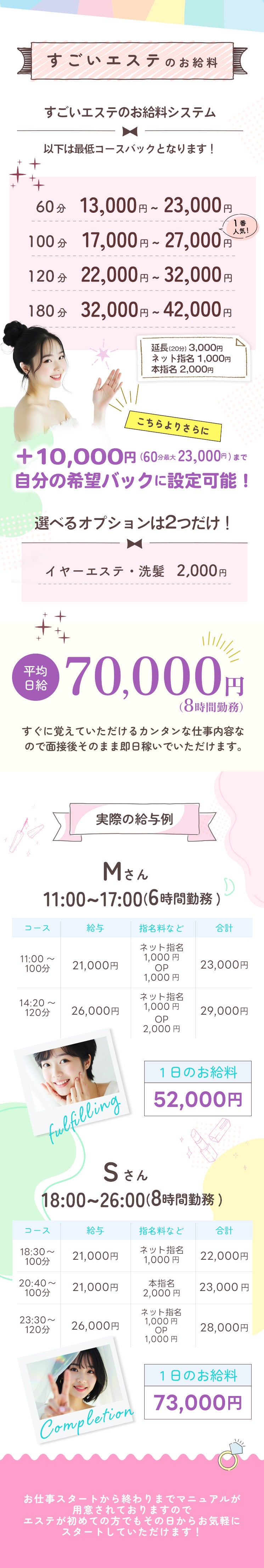 未経験からスタートした方が8割ほどいらっしゃるので、風俗やエステ系が初めての方もぜひ!