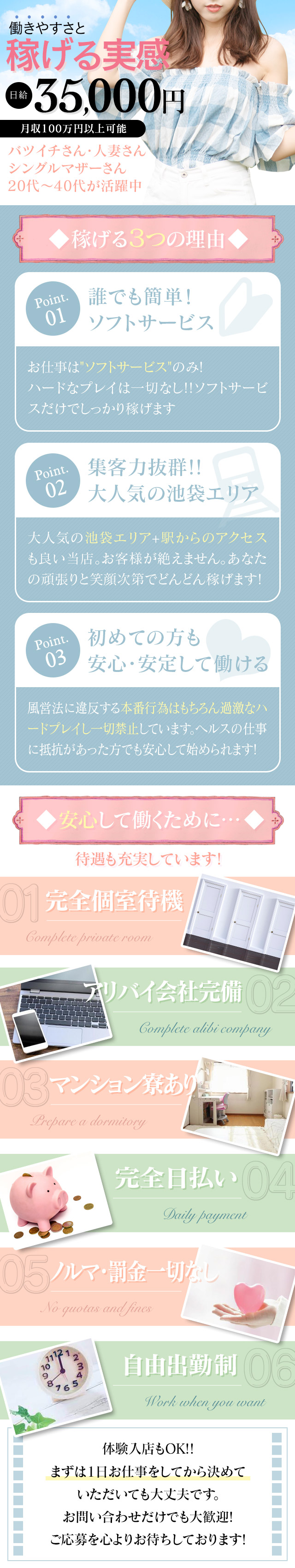 出来る範囲でOK!ソフトヘルスの内容で、手と口を使ったソフトサービスを行っております。- 昼間はOLなのですが、仕事が終わってからでも働けますか?