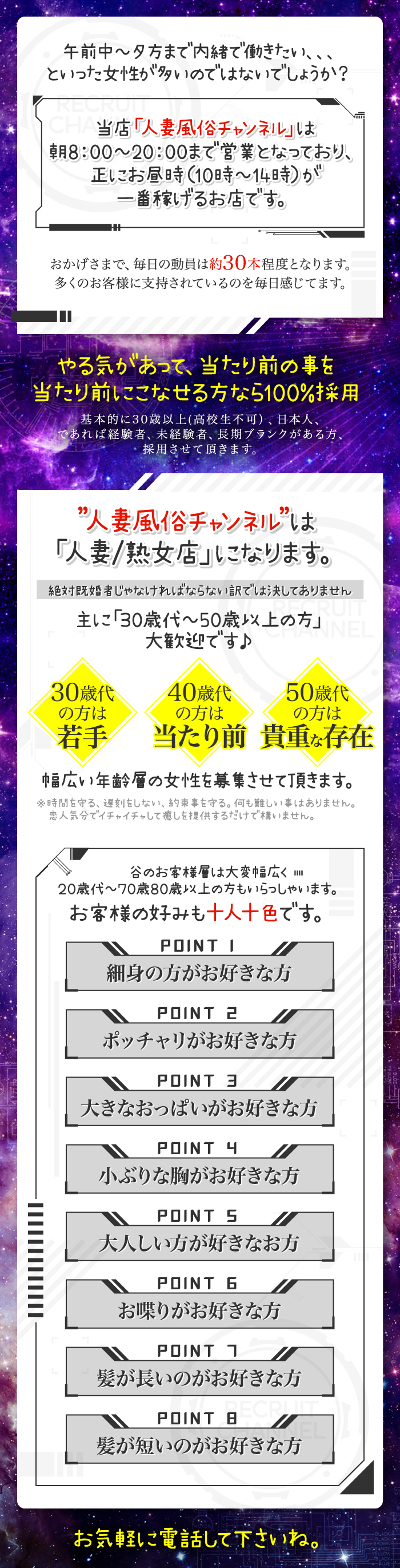 ”人妻風俗チャンネル”は「人妻/熟女店」になります。
