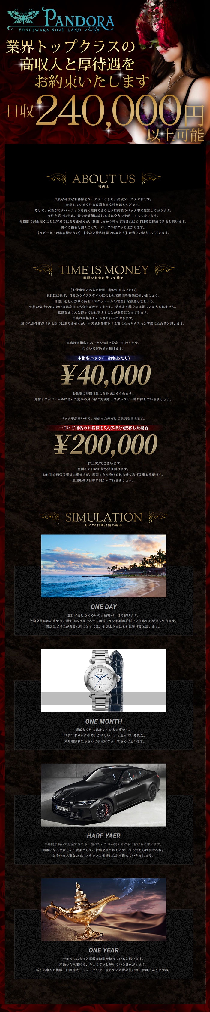- 待遇面は吉原の中でもトップクラス♪ 客層も紳士的な方ばかりですから、安心してお仕事ができます☆