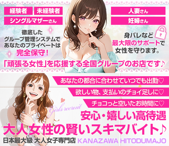 人妻さん、妊婦さん、シンママ、20代~の女性大募集 全国最大級の「人妻、お姉さん系デリヘル 金沢人妻城」あなたの力をお貸しください 圧倒的集客力で満足の稼ぎをお約束します!♪