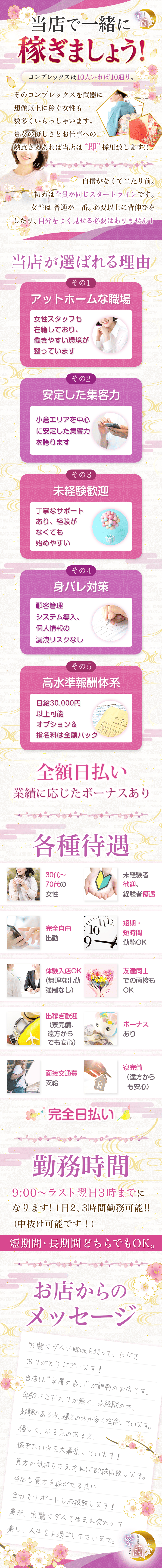 ドライバーさんや在籍している女性たちも優しい方ばかりで、面倒な派閥などは一切ございません。