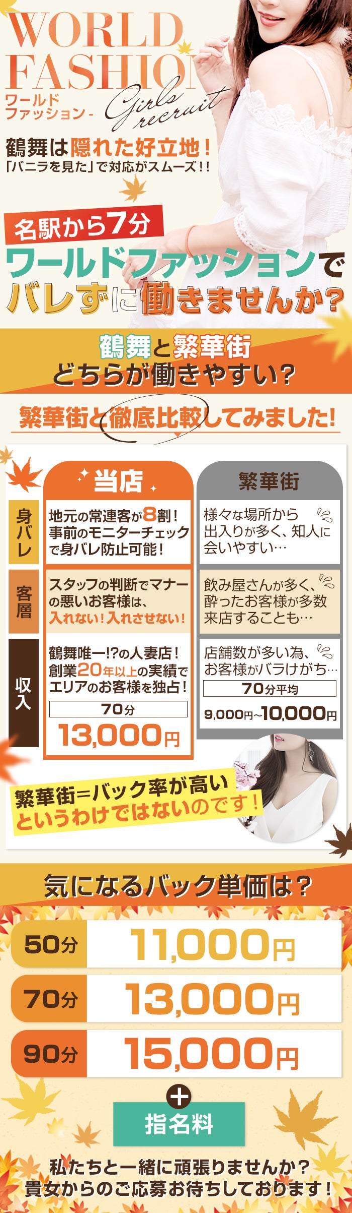 【鶴舞唯一!?の人妻店】70分13,000円+指名料バック!ネット・パネル顔出しなしOK☆万全の身バレ対策で安心!託児所代負担で子育て中の女性も働きやすさ抜群♪1日体験入店大歓迎!