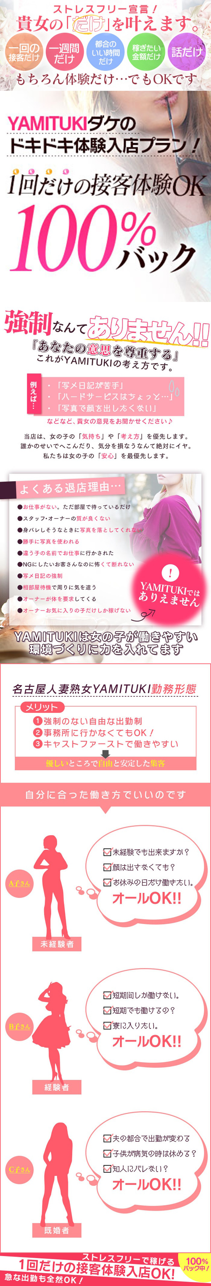 1回のみの接客体験OK!100%バック☆登録制のお仕事なので、他店在籍中の方や同時出勤でも全然OKです!